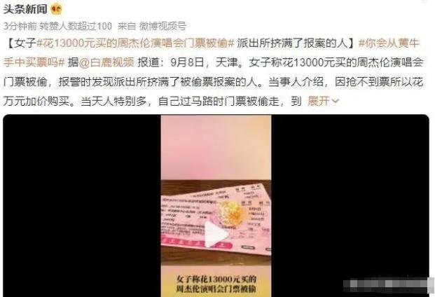 近日,天津發(fā)生了一起令人震驚的演唱會(huì)門票被偷事件,一名女子稱自己花了13000元購買的周杰倫演唱會(huì)門票被盜。事后前往報(bào)警時(shí),她發(fā)現(xiàn)派出所已經(jīng)擠滿了被偷票的報(bào)案人群,引發(fā)了大量關(guān)注。