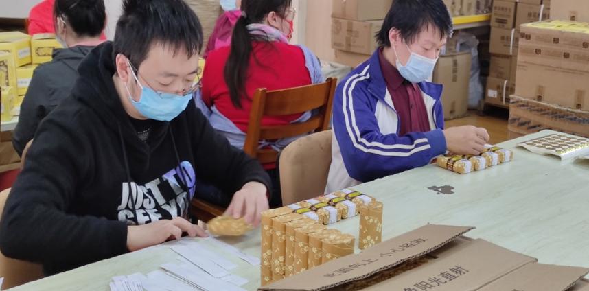 記者深入了解后發現,自2007年開始,上海制皂集團就已經開展了與智力殘障學員的合作項目。這些學員來自上海市楊浦區七個“陽光基地”,總計近300名。他們在這里分工合作,負責蜂花檀香皂、上海藥皂以及未來的25克小樣蜂花香皂的手工包裝。