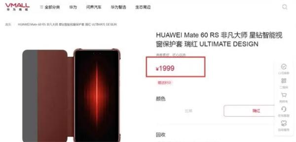 隨著華為商城官網的消息傳來,備受矚目的華為Mate 60 RS非凡大師版手機殼星鉆智能視窗保護套于9月28日10:08正式開售,兩款配色瑞紅和玄黑將同時上架,售價1999元。