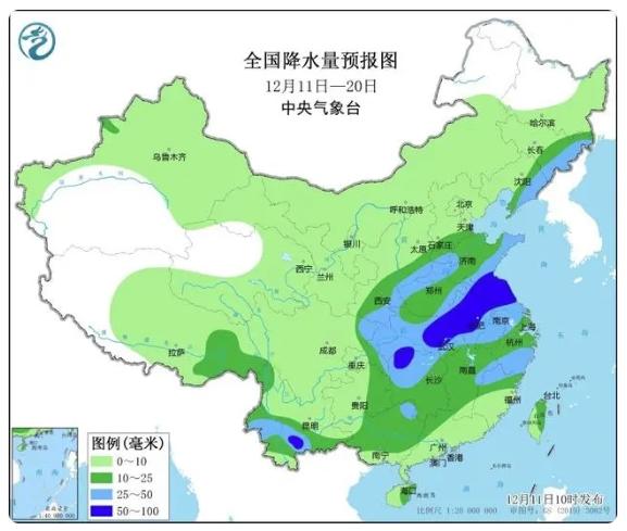 未來的十天,即12月11日到20日,我國將迎來一次寒潮,影響范圍較廣,包括華北南部、東北地區東南部、黃淮、江淮、江漢、江南、華南北部、陜西南部、四川東北部、貴州東部、云南南部等地。這些地區將出現10~40毫米的累計降水量,而江淮、江南北部的部分地區可能超過50毫米。