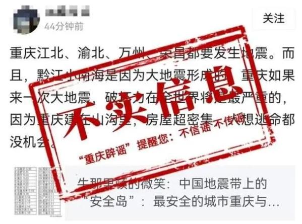 專家指出,重慶地區的地震活動水平相對平穩,不存在即將爆發大地震的跡象。因此,網絡上傳播的“重慶多地將發生地震”純屬謠言,市民無需過度恐慌。