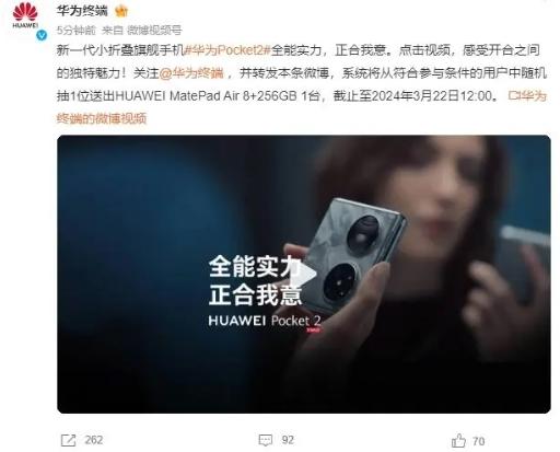 2月22日下午,華為在一場盛大的發布會上正式推出了華為Pocket 2,這款豎向折疊屏手機引發了業界廣泛關注。華為常務董事、終端BG CEO、智能汽車解決方案BU董事長余承東在發布會上發表了重要演講,為這一創新產品揭開了神秘面紗。