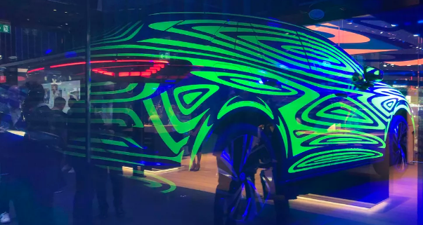這輛車非常難以拍攝,被兩塊玻璃窗遮擋,這兩塊玻璃裝有相同的偽裝,圍繞著實際車輛。每隔幾秒鐘,玻璃窗就會改變不透明度,同時光束穿過ID 4的隱藏孔。