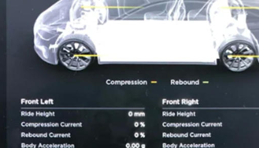 上周晚些時候,該軟件更新開始推向特斯拉的美國車隊,其中包括一個屏幕,該屏幕顯示每個減震器的行駛高度,壓縮剛度和回彈剛度,以及作用在車輛每個角上的G力。根據Reddit用戶AndrasHatvani的說法,這些讀數會實時更新,從而使駕駛員能夠準確監控去年首次亮相的自適應Raven懸架如何自我調整以補償身體運動。
