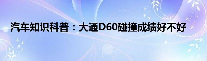 今天來分享一篇個人對汽車知識科普:大通D60碰撞成績好不好相關(guān)分析,眾所周知,無論是在坊間民眾,還是在汽車媒體的議論中,都是不錯的,至于產(chǎn)品到底香不香,通過測試還是可以對汽車知識科普:大通D60碰撞成績好不好的產(chǎn)品力分析分析的,一起來看看吧: