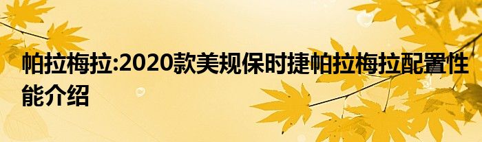 今天來分享一篇個人對帕拉梅拉:2020款美規保時捷帕拉梅拉配置性能介紹相關分析,眾所周知,無論是在坊間民眾,還是在汽車媒體的議論中,都是不錯的,至于產品到底香不香,通過測試還是可以對帕拉梅拉:2020款美規保時捷帕拉梅拉配置性能介紹的產品力分析分析的,一起來看看吧: