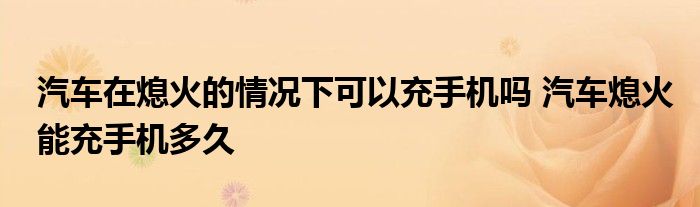 大家好,小態(tài)解答以上問題。汽車在熄火的情況下可以充手機嗎,汽車熄火能充手機多久這個很多人還不知道,現(xiàn)在讓我們一起來看看吧!