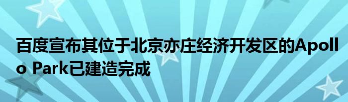 (Apollo Park自動駕駛和車路協同應用測試基地)