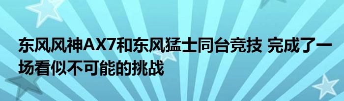 【編者按】眾所周知,軍車往往代表著汽車工業技術的最高水平呈現,而很多優秀的車企背后都有軍工支撐,廣為熟知的如軍車悍馬和的東風猛士,都是硬核產品實力的絕對代表。面對如此強大的對手,你能想象民用車竟然也能和軍車“抗衡”么?5月24日,在重慶際華園試駕場地,未經改造的量產車東風風神AX7和軍車東風猛士同臺競技,完成了一場看似不可能的挑戰。