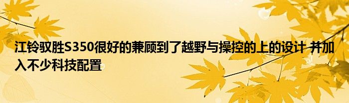 能玩能造,還有比較省心的硬件搭配,江鈴馭勝S350真正將轎車的省心與越野車的強大性能融為一提,兼顧自駕游需求的同時,保留了城市駕駛的舒適性與便捷,讓新手用戶能真正意義上體會到駕駛的樂趣,從而真正愛上戶外旅游。