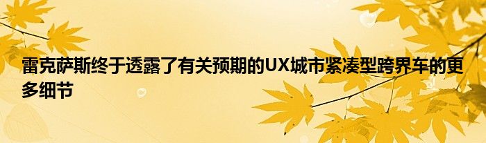 雷克薩斯終于透露了有關預期的UX城市緊湊型跨界車的更多細節。在日內瓦車展上全球首次亮相之前,車迷和評論家有機會親眼目睹這款機器的意義,并回顧其功能和特點。