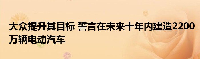 德國法蘭克福 - 德國汽車制造商大眾汽車公司周二表示,計劃在未來10年內將其電動汽車產量提高至2200萬輛,并將其在車輛生命周期內的碳足跡減少30%。