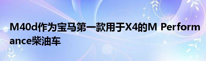 從后一款發(fā)動機開始,M40d作為寶馬第一款用于X4的M Performance柴油車,可以被陳列室中的其他車型采用,例如平臺共享X3。它采用3.0升渦輪柴油直列六缸發(fā)動機,產(chǎn)生強勁的240kW和680Nm。寶馬稱0-100公里/小時僅需4.9秒。
