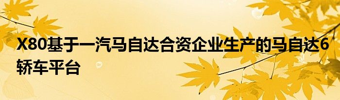 X80將由馬自達(Mazda)生產的2.0和2.3升四缸發動機提供動力,與6速手動或5速自動配對。價格將在130.000人民幣左右開始。X80是在2011年上海車展上首次亮相的一汽X-Concept的基礎上進行設計的。