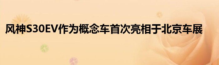 東風(fēng)風(fēng)神S30 EV將于明年下半年進(jìn)入汽車市場(chǎng)。風(fēng)神S30 EV作為概念車首次亮相于2010年北京車展。它基于Fenshen S30轎車。風(fēng)神S30 EV將由上海電氣公司制造的120hp電動(dòng)機(jī)提供動(dòng)力。