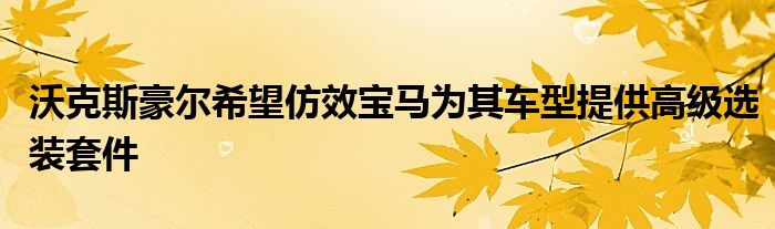 沃克斯豪爾希望仿效寶馬為其車型提供高級(jí)選裝套件,以期提高通用汽車在英國(guó)的子公司的平均銷售價(jià)格和利潤(rùn)。