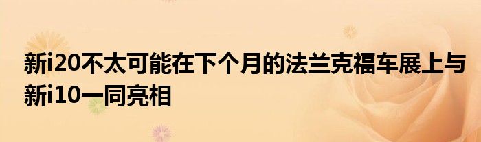 近期涉及新i20不太可能在下個月的法蘭克福車展上與新i10一同亮相內容備受矚目,很多讀者對此也很有興趣,現在給大家羅列關于新i20不太可能在下個月的法蘭克福車展上與新i10一同亮相最新消息。