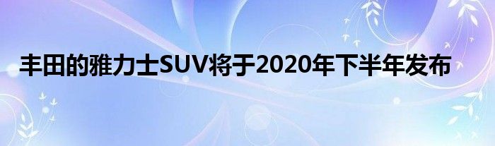 Auto Express目前的報道稱,新款小型豐田S UV有望在今年下半年曝光,將這場戰斗帶給雷諾Captur和日產Juke等車型。