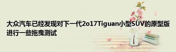 大眾汽車已經發現對下一代2o17 Tiguan小型SUV的原型版進行一些拖曳測試。原型被大量偽裝包裹著,這可能掩蓋了巨大的設計變更。在澳大利亞,Tiguan與來自的激烈競爭競爭,因此,多年來銷量下降。自2012年以來(當年迄今至7月)售出了4676個實例,幾乎每年均下降到4040個。