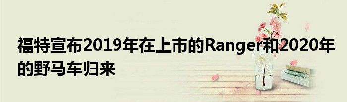在2017年北際車展上,汽車業最保守的秘密之一得到了證實,福特宣布2019年在上市的Ranger和2020年的野馬車歸來。
