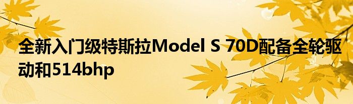 特斯拉(Tesla)推出了新入門級Model S 70D,它將取代后輪驅動器S 60。顧名思義,D代表型號S 70D帶有雙電動機設置,可提供全輪驅動和更大的動力。