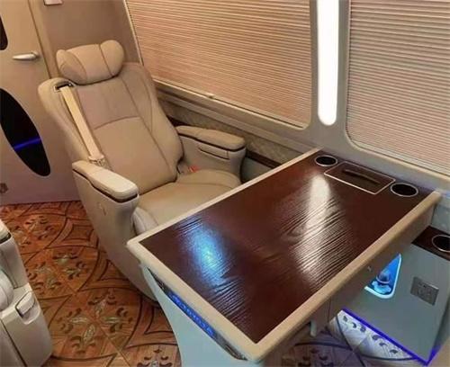 此外,在豐田考斯特商務車的內部空間中,燈光的設計也是改裝設計中不能忽略的重要方面。在窗簾內側和車內立柱上增加LED燈光,同時在通道兩側增加LED藍色燈光,可以為車內營造出溫馨、淡雅的氛圍。而在臺階上鑲嵌LED燈光,則可以展現品牌標識等內容。車內的燈光設計不僅可以提高乘車的舒適性和視覺感受,還能夠增加車內的科技感和豪華感。