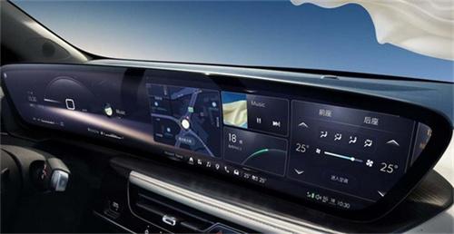 內飾也是君越的亮點之一,全新一代君越采用別克最新的虛擬駕駛座艙系統,其中中控臺上搭載了一塊30英寸的曲面屏幕,分辨率達到6K,完全沒有拼接的一整塊屏幕。前排中央T字區域頂部配備了手機無線充電板,下方則是寬敞的儲物空間。此外,在用料和工藝上,新一代君越也下足了功夫,內飾采用激光拉絲和法式雙縫線工藝打造。