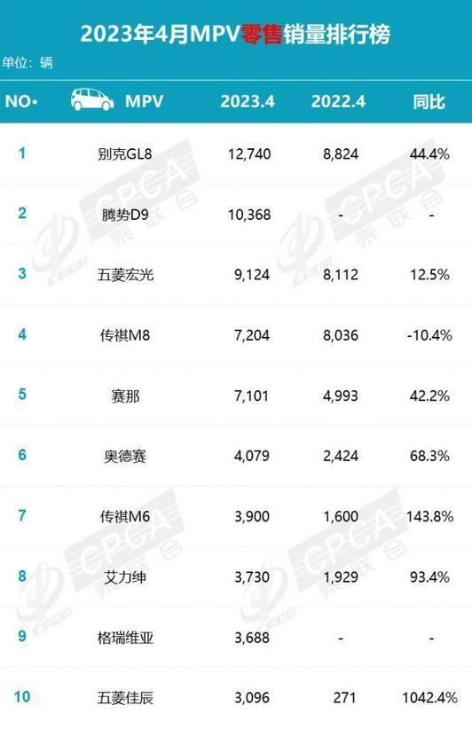 根據乘用車市場信息公布,2023年4月份MPV細分市場的銷量持續增長,為該市場注入了新的活力。MPV細分市場累計銷售新車達到9.6萬輛,同比增長73%。而今年1-4月的累計銷量更是達到了33.8萬輛,同比增幅高達14.8%。相對于SUV和轎車細分市場,MPV細分市場整體漲幅令人欣喜。