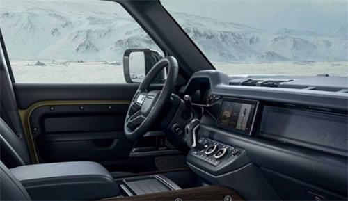 全新路虎衛(wèi)士的內(nèi)飾設(shè)計(jì)非常豪華且硬派,充滿色彩感。方向盤采用復(fù)古風(fēng)格的四幅式設(shè)計(jì),儀表盤采用12.3英寸液晶顯示屏,中控大屏采用10英寸懸浮式屏幕,屏幕后方采用內(nèi)凹式貫穿式裝飾條,整個(gè)中控臺(tái)框架呈現(xiàn)硬派風(fēng)格。