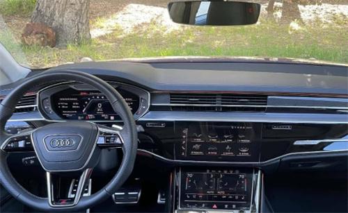 新款S8的內飾部分變化并不顯著,依舊采用標志性的嵌入式三大屏設計。這款多年來的內飾設計雖然視覺沖擊力已經減弱,但其堅持感和豪華感依然存在。S8車型采用了三九點鐘打孔的S方向盤、金屬油門剎車踏板,隨處可見的碳纖維裝飾以及打孔真皮座椅等細節,足夠彰顯其運動特性。另外,黑色車頂等元素,展示了行政級轎車應有的姿態。