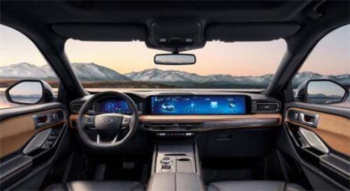 車內采用了27英寸高清4K巨幅屏幕和12.3英寸全彩數(shù)字液晶儀表盤,使車廂更加時尚且充滿科技感。在駕駛輔助方面,探險者昆侖巔峰版配備了全新的SYNC+ 2.0智行信息娛樂系統(tǒng)和L2級福特 Co-Pilot 360™智行駕駛輔助系統(tǒng),并配備福特首發(fā)的車路協(xié)同系統(tǒng)V2I,為用戶帶來更便捷的智能出行體驗。