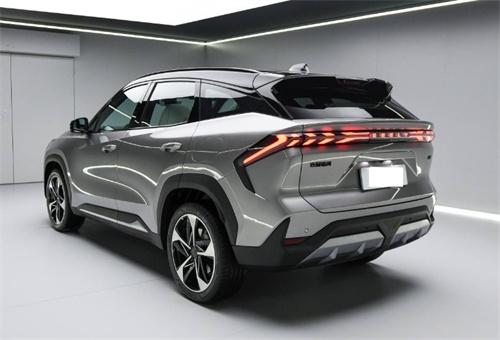 車尾設計緊湊,車頂突出的擾流板設計凹凸有致,連接兩側突出的熏黑飾板,形成了尾翼一般的造型,增加了運動感。尾門部分采用凹凸有致的棱角線條設計,結合底部大面積的熏黑飾板包裹和擾流槽的鑲嵌,進一步突出了運動定位。尾燈內部整體采用熏黑配色,類似于魚骨式的光源設計,點亮后辨識度更高。整體設計時尚而運動。