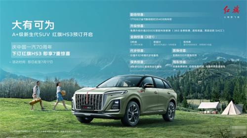 為回饋用戶的支持,紅旗HS3還推出了七重驚喜專屬權益。只要在2023年7月17日前預訂并購車的用戶,將享受“70周年HS3七重驚喜”。包括訂金翻倍抵扣、免費升級智能科技套裝、0利息金融方案、代步車服務、置換支持、全包保養服務以及終身免費保修和救援等福利。