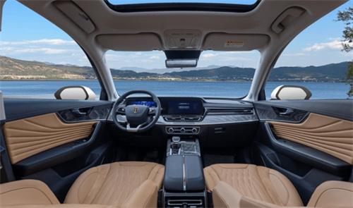 首先,讓我們來看看新紅旗HS5的顏值。它采用了“尚·致·意”的造型語言,直瀑式格柵搭配“飛翼”式前大燈,展現了唯美的自然風情;此外,貫通式前旗標以“紅光閃耀”的形式凸顯其昂揚氣勢。側身腰線靈動凌厲,車身型面旌旗飄揚,貫穿式尾燈的點綴更是提高了辨識度。內飾設計充滿東方美感和前沿技術,儀表板和懸浮面板簡潔實用,又不失精巧美感。細節方面,流水氛圍燈、實木飾板和金屬揚聲器面罩等裝飾點綴,打造出精致豪華的座艙環境,養人之氣盡顯。