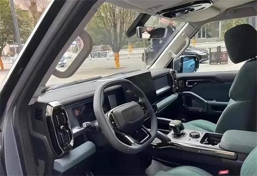 內飾方面,新車的中控區域采用了T型平直布局,方形方向盤搭配仿麂皮材質座椅和水晶擋把等高級配置,增添了硬漢SUV的氣息。此外,新車還配備了15.6英寸中控屏和10.25英寸儀表屏,提升了駕駛科技感。