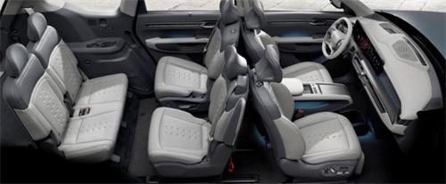 有趣的是,這款車提供6座和7座版本。6座版本的第二排座椅可以360度旋轉(zhuǎn),與第三排形成面對面的對坐布局,但這樣坐的話腿部空間就比較狹窄。