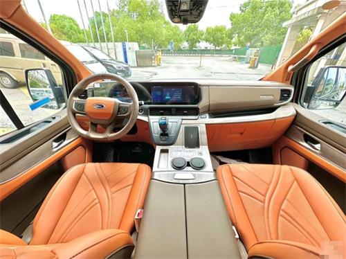 從外觀到內(nèi)飾,這款定制版福特黑武士在配置上毫不吝嗇。整車采用真皮包覆,從駕駛艙的門板到中控臺再到頂部,精細(xì)化的包覆營造出高品質(zhì)的質(zhì)感。門板上的壓花走線工整有序,展現(xiàn)了車輛的精致工藝。車輛還配備了空氣彈簧,使行駛過程更加平穩(wěn)。駕駛艙中央還配置了扶手冰箱、無線充電和杯托等實(shí)用功能。