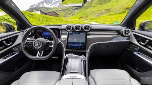 全新GLC轎跑的內飾布局與GLC兄弟車型相似。車內配備了高科技的智能座艙,包括12.3寸數字儀表和11.9英寸直立式中控觸控屏幕,以及全新的方向盤。車載系統采用最新的MBUX系統,配備了Burmeister 3D環繞聲音響、HUD抬頭顯示和無線手機充電面板等實用功能。同時,標配的AMG Line套件提供了皮革襯里的儀表板和多種木質飾板。全景天窗成為全系標配,增加了視野的開闊度,提升了駕乘舒適性。