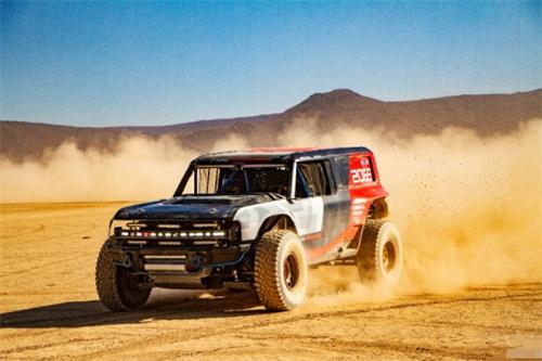 福特Bronco R原型車在懸掛系統上進行了升級,采用了行程為356mm的獨立前懸架和行程達457mm的改進后懸架。此外,它還配備了FOX特制避震器、17寸鋁圈和37寸BFGoodrich越野胎。這輛原型車基于福特T6平臺改造而來,該平臺也是量產版全新Bronco的基礎。福特賽事部門為了迎接巴哈1000賽事的極限挑戰,特意準備了更堅固的零件,以確保車輛在比賽中的出色表現。