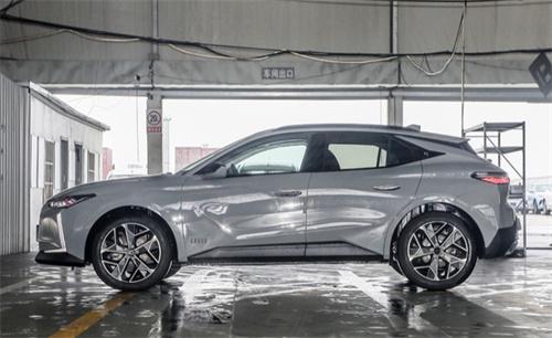 車身側面的設計線條犀利,腰線勾勒特別,整體造型棱線分明,配有隱藏式車門把手。車身尺寸為4400mm×1830mm×1470mm,軸距為2675mm,展現了緊湊跨界的風格特點。