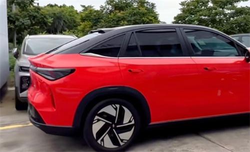 該車的溜背Coupe造型展現出純電轎跑SUV的姿態,加上隱藏式門把手、19寸低風阻輪轂和分段式擾流板等設計,使其具備了0.238cd超低風阻系數。雙色車身也提升了時尚和動感屬性。車身尺寸方面,睿藍7的長度、寬度和高度分別為4690mm、1892mm和1650mm,軸距為2775mm,與比亞迪宋PLUS EV相差不大。尾部設計采用上翹的小鴨尾造型,強調運動風格,與前臉相呼應,兼顧精致感和科技感。
