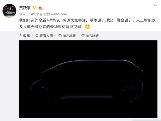 4月4日,許久未公開(kāi)發(fā)聲的法拉第未來(lái)創(chuàng)始人賈躍亭發(fā)布微博,介紹FF的新車型V9。