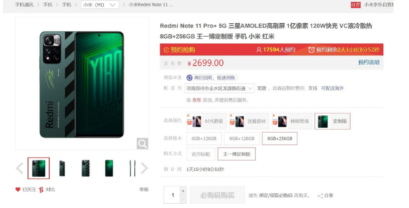Redmi上個月在中國發布了 Redmi Note 11 系列智能手機。除了推出Redmi Note 11、Note 11 Pro和Note 11 Pro+智能手機外,該公司還推出了 Redmi Note 11 Pro+ YIBO Design 限量版手機。該手機現已在京東上市,并計劃于 11 月 11 日在中國上市銷售。