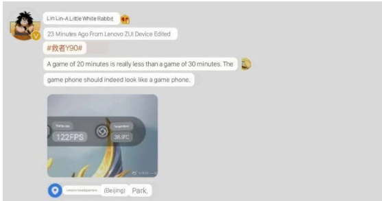 聯(lián)想筆記本產(chǎn)品經(jīng)理林林今天對(duì)即將推出的聯(lián)想軍團(tuán)Y90游戲手機(jī)進(jìn)行了調(diào)侃,他表示即使以120FPS的速度玩了20分鐘,該設(shè)備的溫度仍為38.9°C。