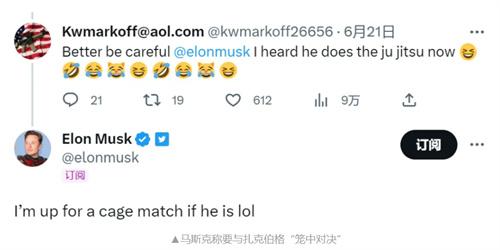 近日,外媒報道推特公司首席執行官馬斯克在個人社交媒體上發文稱,要與mate公司首席執行官扎克伯格來一場籠中對決。隨即,扎克伯格在自家旗下的社交平臺上留言,宣布接下馬斯克在推特上的戰書,并回應馬斯克稱將地址發給自己。這則消息在互聯網上曝光后越演越烈,甚至有博彩公司對這兩位科技巨頭開了盤口,扎克伯格在這場籠中對決中有83%的幾率能贏。