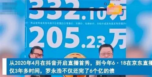 近日,交個朋友直播優選賬號發布了一條視頻,在這條視頻中配文,近期還完六個億的羅永浩開始飄了。據了解,羅永浩自從2020年在四月份開啟直播首秀后,截止到2023年618購物節,僅用了三年多的時間就已經還完了幾個億的負債。除此之外,還成為了一個橫跨抖音,淘寶和京東三大平臺的超級主播,對此交個朋友直播間公司相關負責人表示,羅永浩還清債務的消息不實。目前羅老師依舊在努力的工作,希望能夠盡快的還清債務,后續會與發布該視頻的賬號溝通下架相關視頻。
