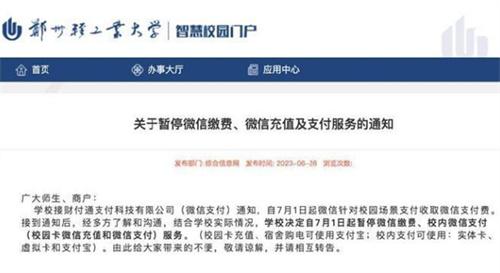 此前有多家高校發布公告稱,從7月1日開始暫停使用微信支付,主要的因素是微信從7月1日起將會調整校園場景的服務費率,騰訊方面做出的回應是,這一次的調整不會涉及學雜費和一些非盈利場景,對于校園盈利場景,包括部分電商還有旅館之類的行業,計劃費率會調整為百分0.2%,并非是網傳的0.6%費率,不過根據當前統計來看,目前已經有十所高校在官方途徑上宣布暫停使用微信支付。