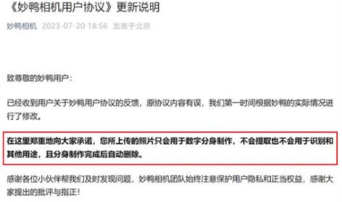 不過隨著這個相機的走紅,也引發了很多公眾的質疑,有很多用戶發現,該相機對用戶協議中是存在一些不恰當的描述,對此妙鴨相機回應稱,原協議的內容有誤,并且在第一時間刪除了原先的協議。根據網絡安全研究專家表示,妙鴨相機方面修改用戶協議內容的原則是對的,制作數字分身之后就刪除用戶的照片。在個人信息保護方面也是有著相應的要求,公司是不能夠保留用戶的數據,如果想要運用在其他用途,就需要用戶再次授權。