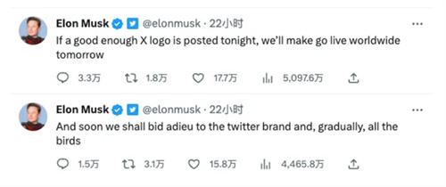 去年十月底馬斯克曾用440億美元接手了推特Twitter,人們認為有馬斯克接手后這家主流的社交媒體平臺會有所改善。至今為止Twitter面臨的巨變仍舊未停止,上個周日,馬斯克成公回應稱Twitter的廣告商回歸趨勢較為緩慢,自己將會采用更多的措施,通過品牌重塑的方式讓這家社交媒體公司走向全新的方向。后面會用x的標志來取代大家熟知的藍鳥logo標志,將把這一應用打造成一款超級APP。