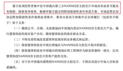 除此之外,不得以任何實質性質改變慧榮科技的現有業務模式以及運營模式,且保留慧榮科技在中國境內的現場應用工程師作為后續研究資源的一部分。通過這種方式向相關客戶提供支持,對于中國境內銷售的閃存主控芯片,不得在這些芯片設計中添加任何的惡意編碼。